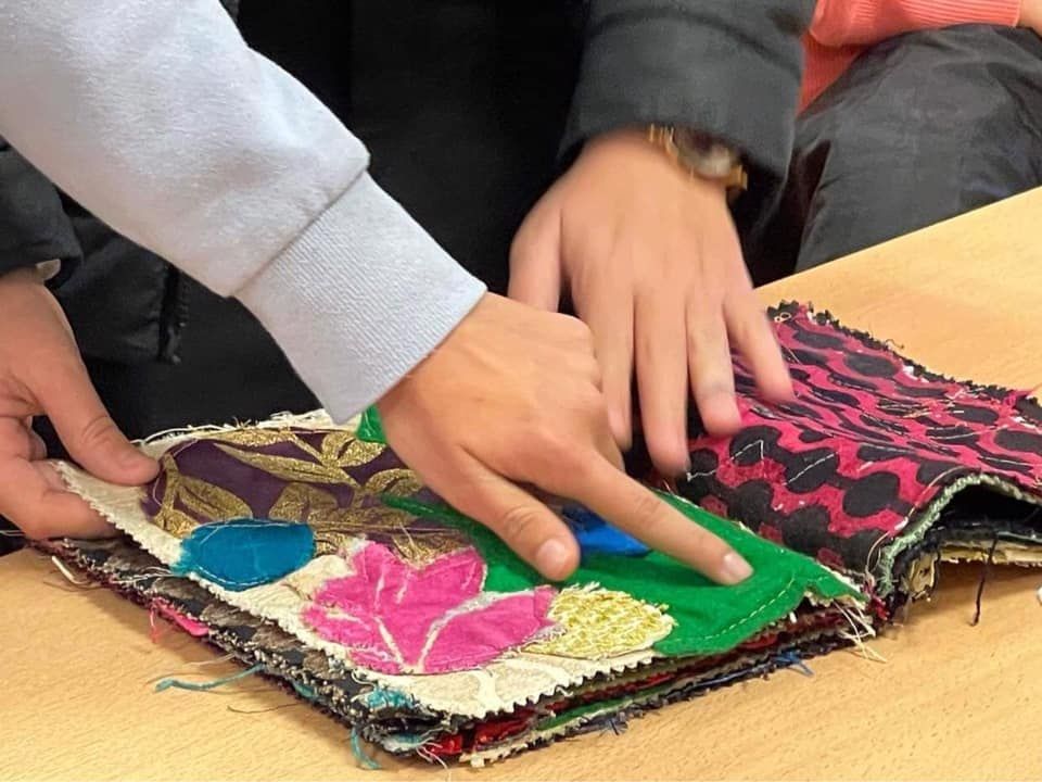 IN 2020, through preparatory collages for her paintings, Duda began a new textile based series entitled, Textile. Using reclaiming fabrics, velvets, silks ans arabesque patterns sourced in France, she composes works that, like her paintings, explore layering, contrast, and materiality. This dimension expands her practice into the three dimensional field, establishing a dialogue between cultures and temporalities.