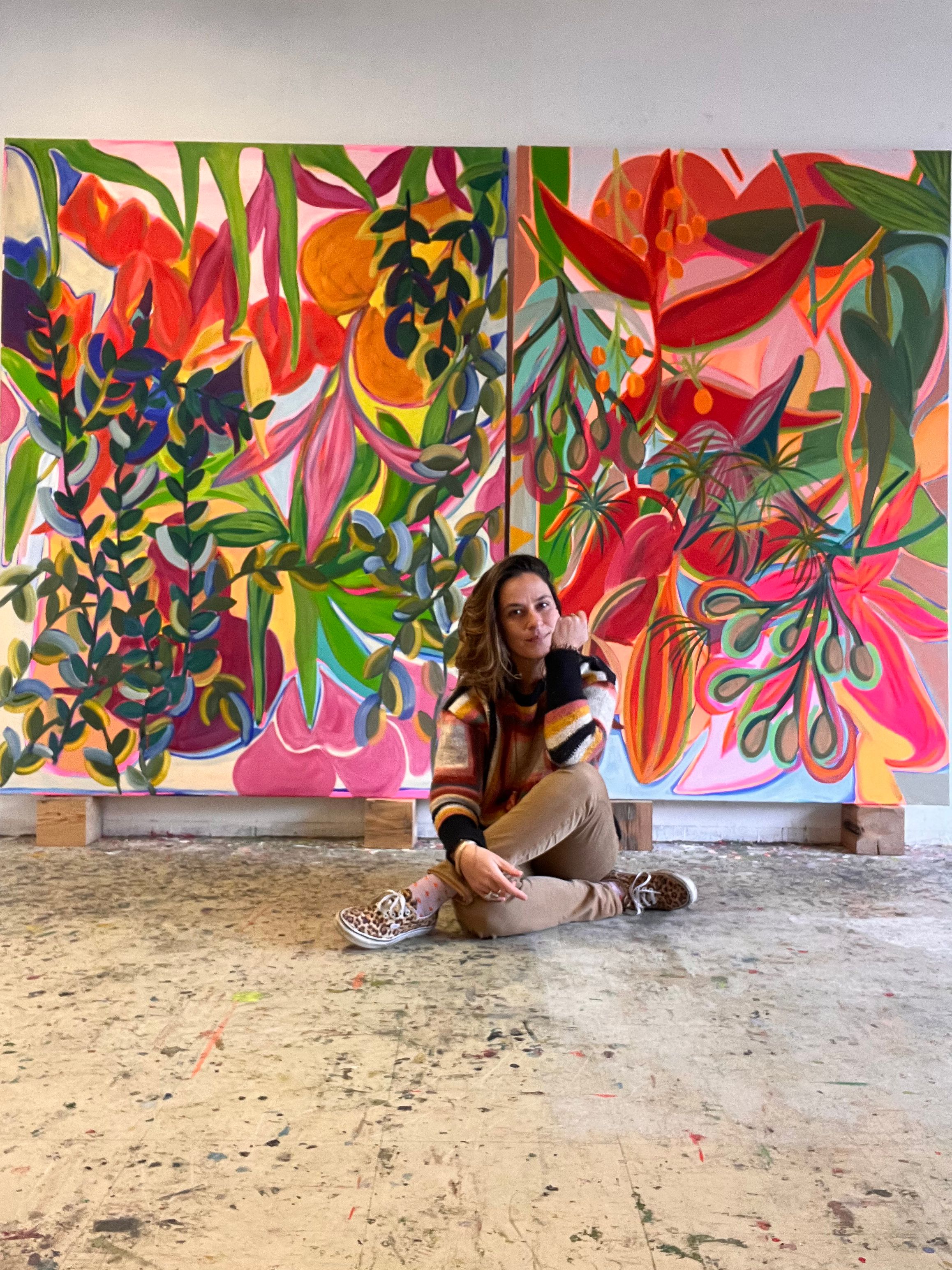 Her research stems from the observation of nature, not as an object of representation, but as a starting point for a pictorial expression that reflects internal states and impressions of contemporary daily life. What may at first seems floral or organic reveals, through its layers, a silent chaos, a reflection of a world in constant tension. Her gesture, often impulsive, carries a visceral force, expressed through intense contrasts, vibrant colors, and compositions that move between control and freedom.