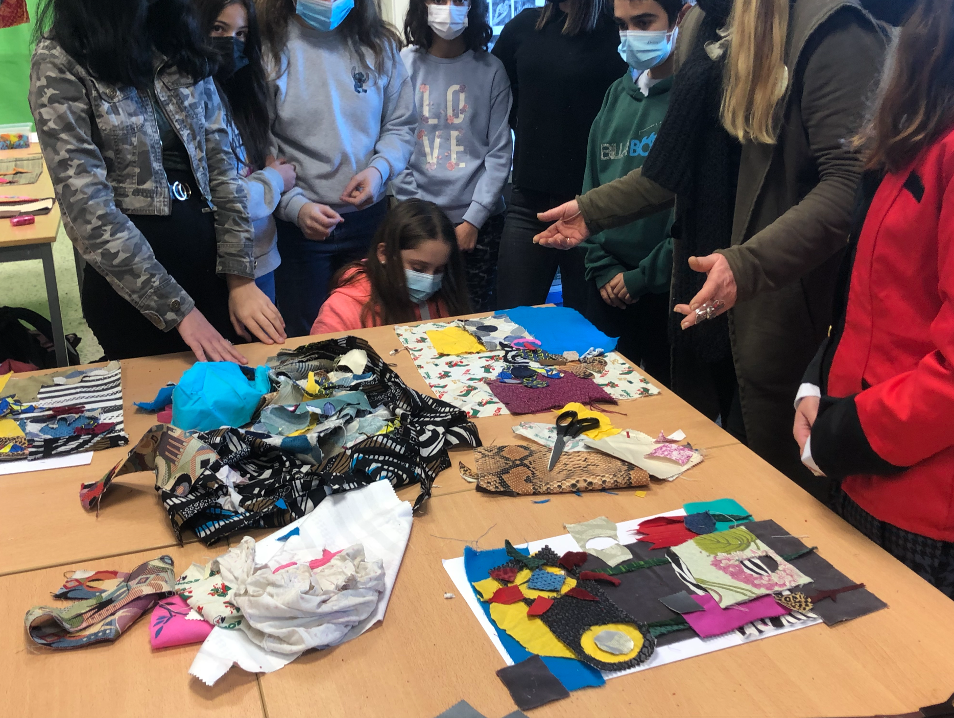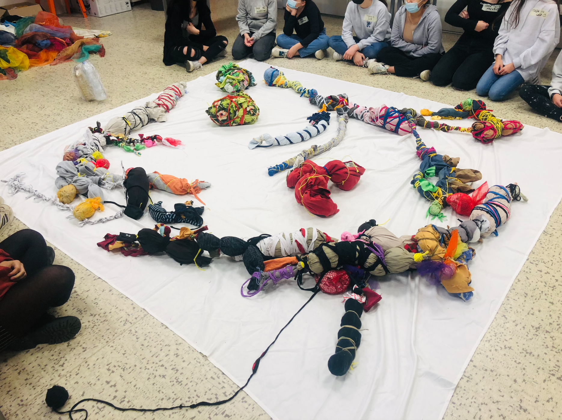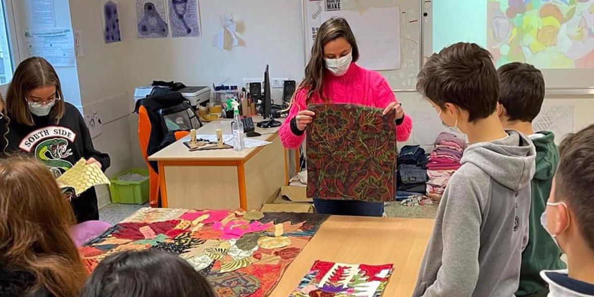 This artistic and cultural education project EAC, is developed by The Creative Agency. It involves artistic practices centered around textile art with the visual artist Duda Moraes. The students from Val de Saye Middle School in Saint-Yzan-de-Soudiac were able to, through artistic practice with artist Duda Moraes, examine the issue of textile waste from an ecological perspective while also exploring the possibility of using this material as a medium for creation.