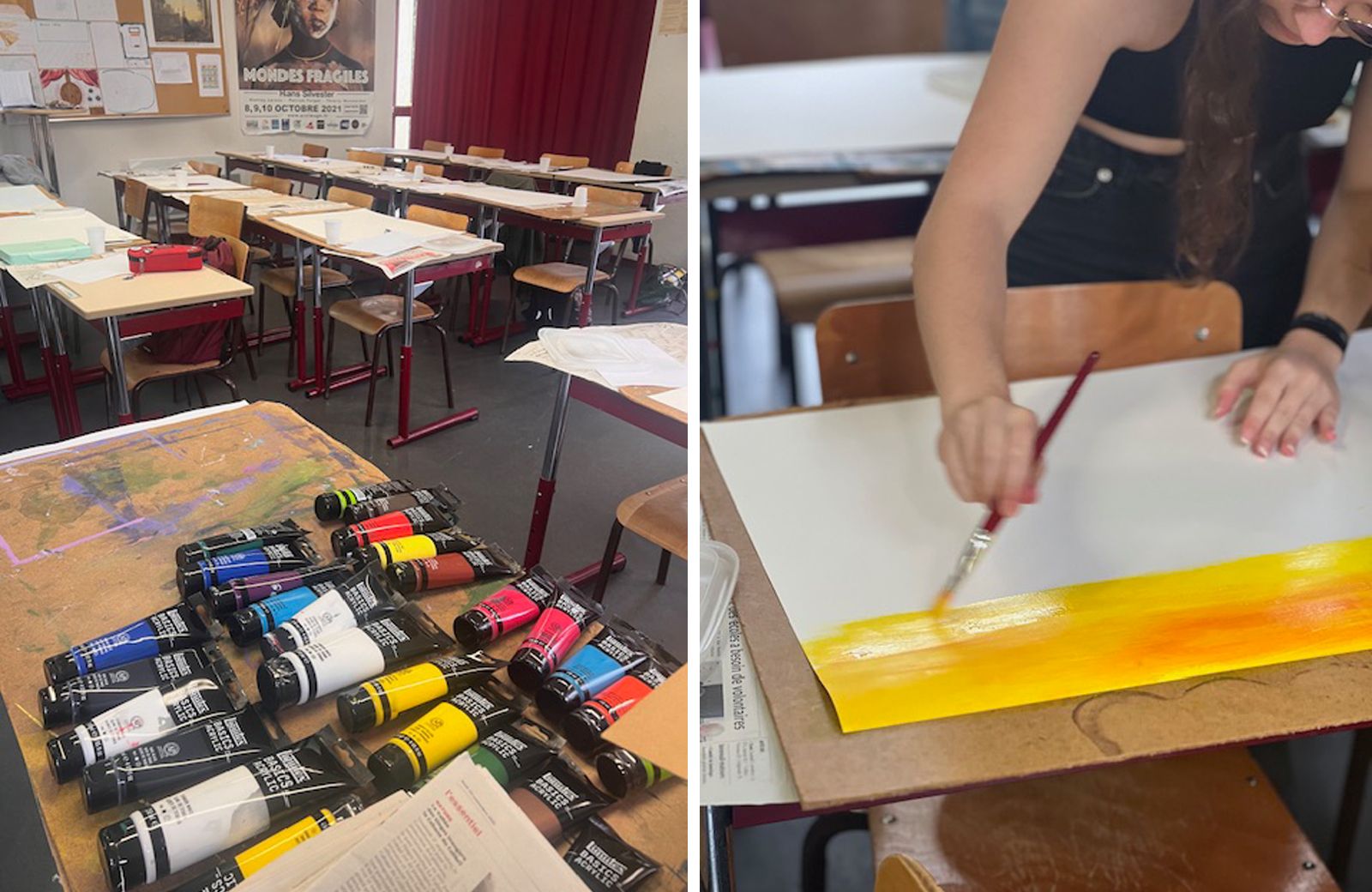 Painting workshop at Lycée Bois d'Amour in Poitiers with senior-year students