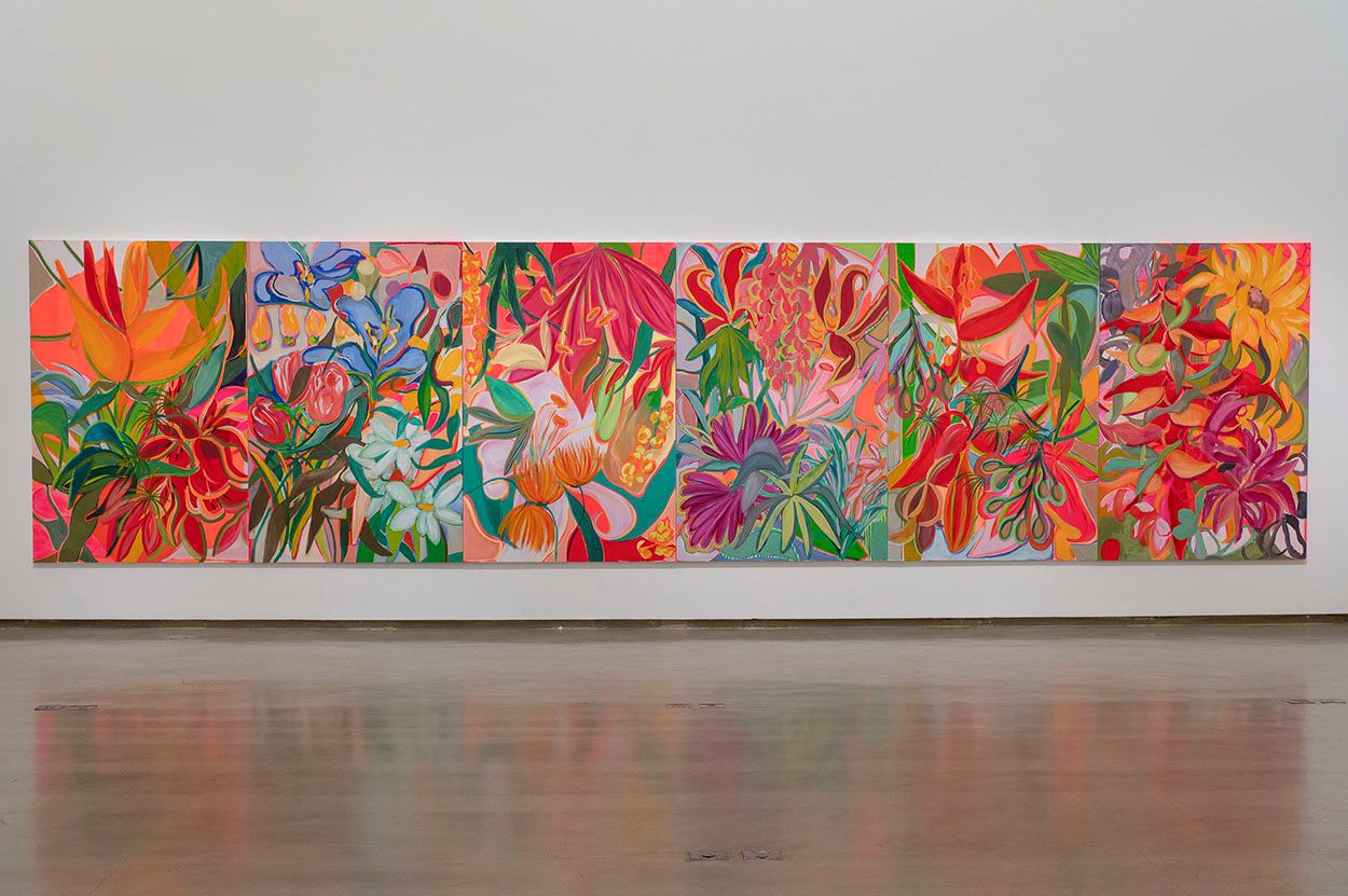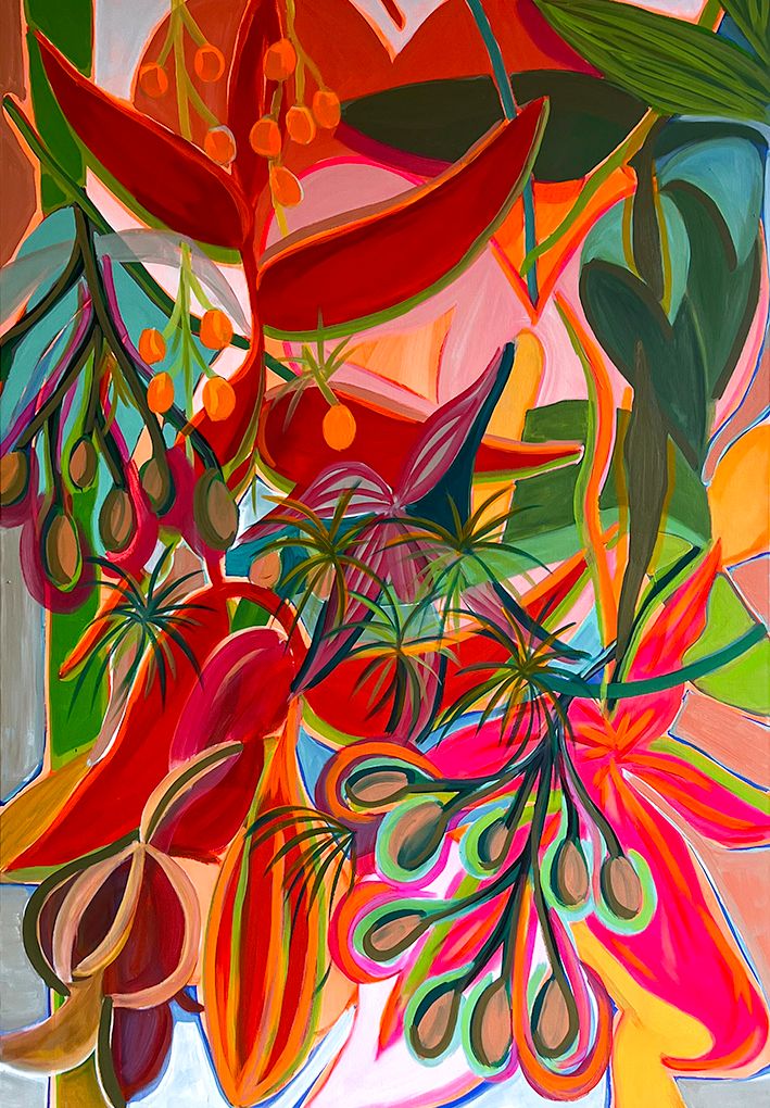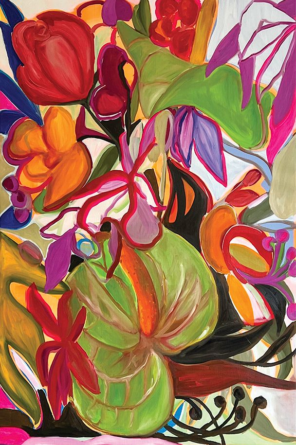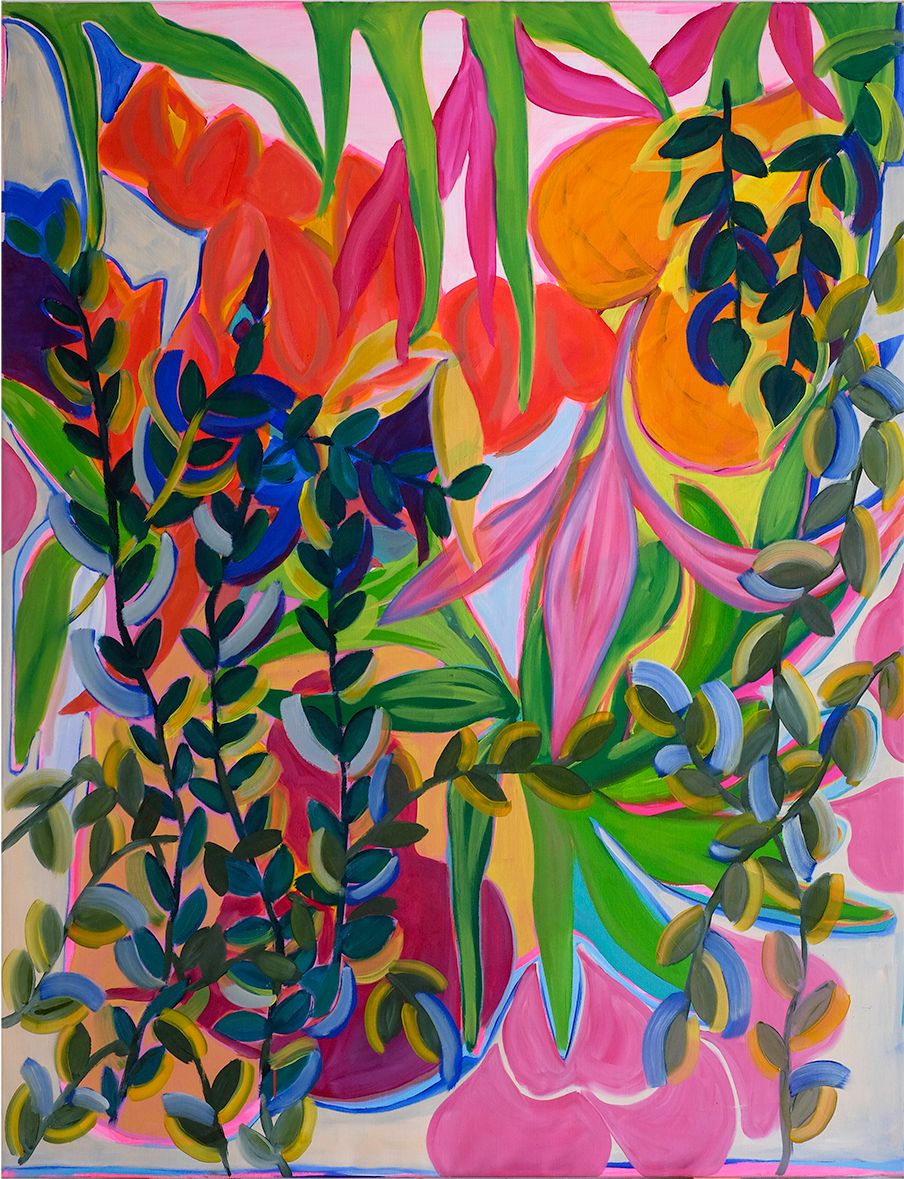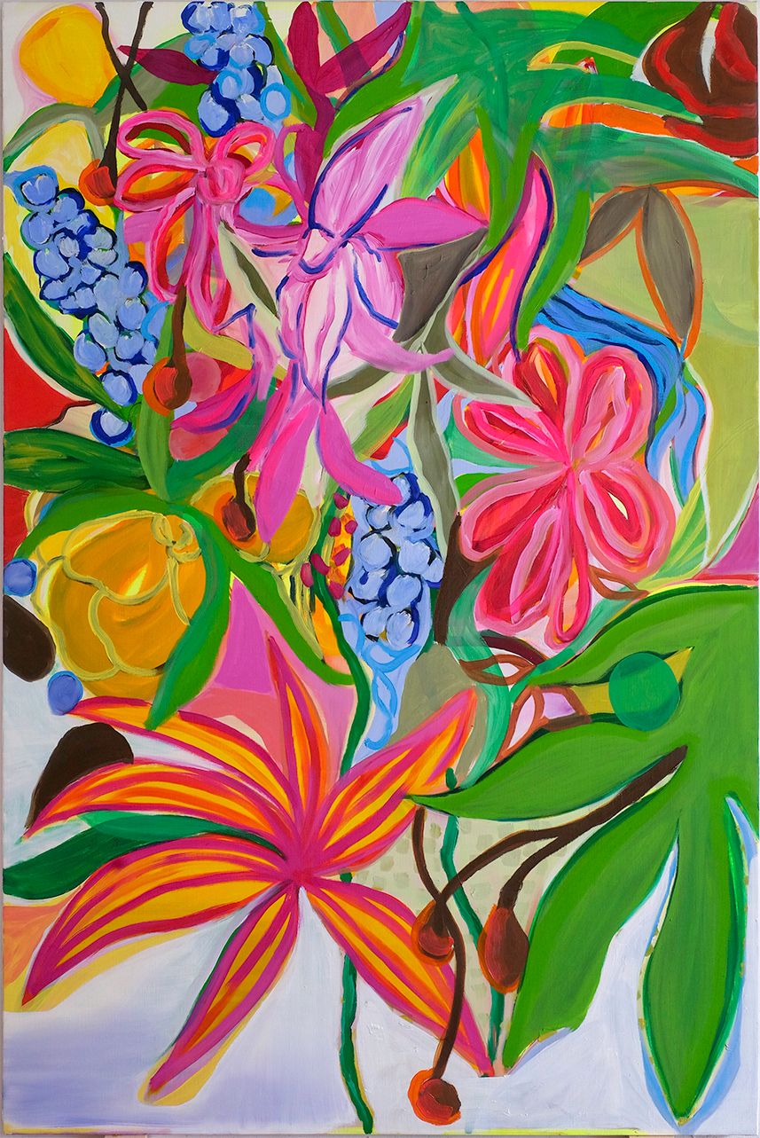 Overflowing with energy, with blooms without reason or order, Duda Moraes's canvases seem at first glance to abound in our senses: satisfaction of an exoticism if not joyful, at least immediately lively and colorful, restless yet exultant. But, and this is the title of this 2023 series, Duda Moraes also invites us to "Look at the Flowers". That is to say, to stop, to move away from preconceived images and tropical clichés, from the registry and calendars of art and emotion. And what we then see is quite different: it is the gestures, movements, and thicknesses, the substances, the thrusts, the sketches, the impatience, the indecisions, and the firmnesses: a whole chthonian activity and theatricality on the canvas that supports the floral. And the thought. Work and germination, a visceral abstraction, something beneath the color